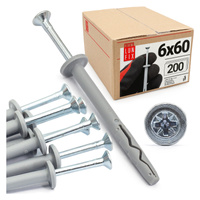 Hmoždinky natloukací 6x60 hříbek, rozpěrné 200 ks.
