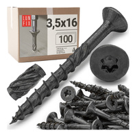 Tesařské černé šrouby 3,5x16 se zapustnou hlavou pozinkované 100ks