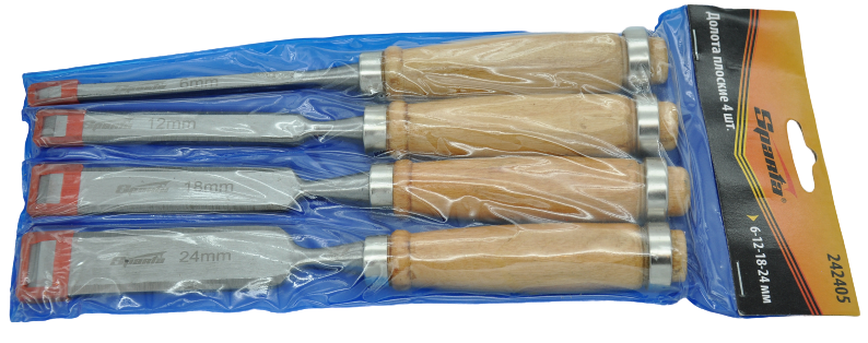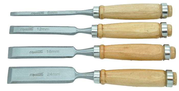 - 4 dłuta o szerokości ostrza: 6, 12, 18 i 24 mm