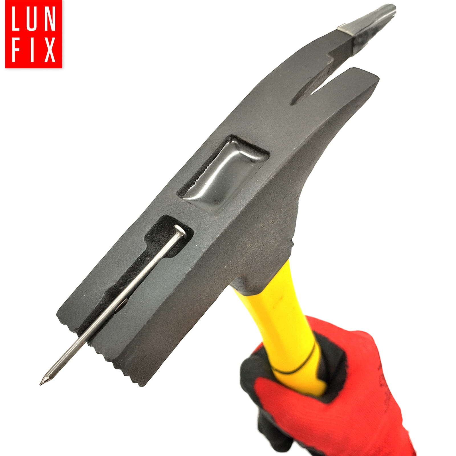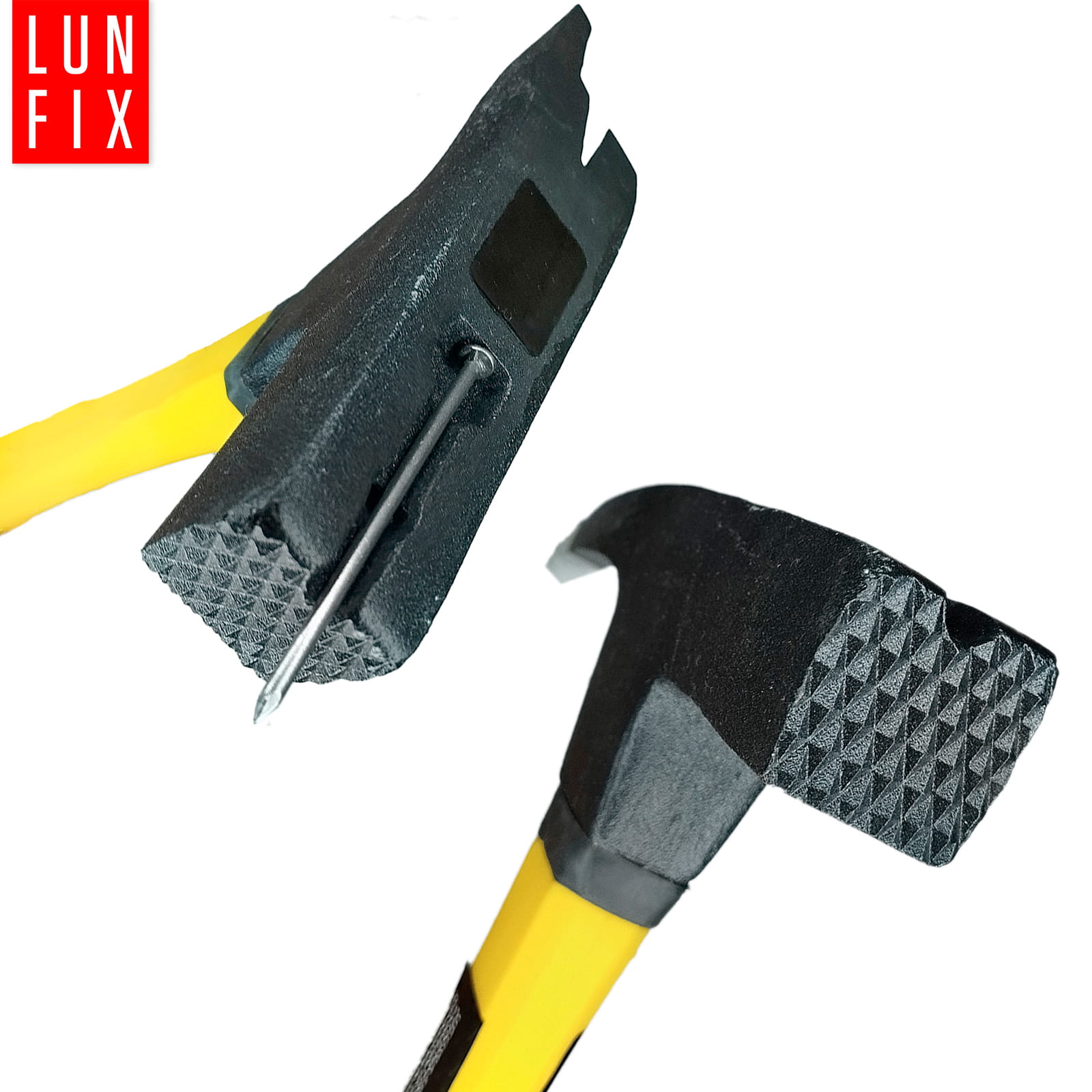 - Całkowicie metalowy młotek wyciągacz do gwoździ z wysokiej jakości stali narzędziowej, kuty, z dokładnie dochowanym trybem obróbki termicznej.