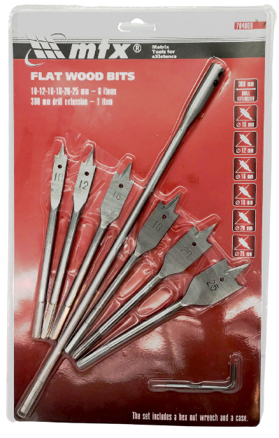 - Średnice wierteł w zestawie: 10-12-14-16-18-20-25 mm
