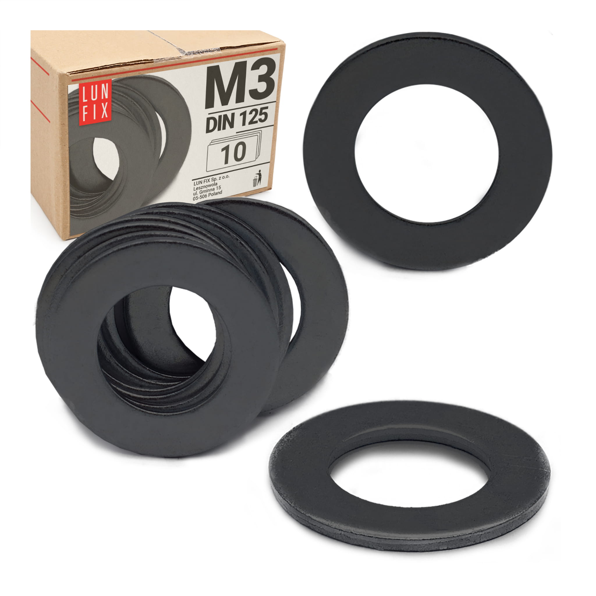 Plochá podložka M3 černý pozink DIN125 10ks.