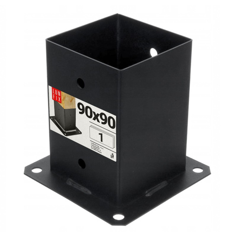 Patka sloupku slouží k upevnění dřevěných nosných sloupků na tvrdý povrch, např. beton, dřevo, ocel. Díky černému laku vypadá tato patka výjimečně elegantně a esteticky. Doporučená montáž na povrchy pomocí kotev a šroubů.
