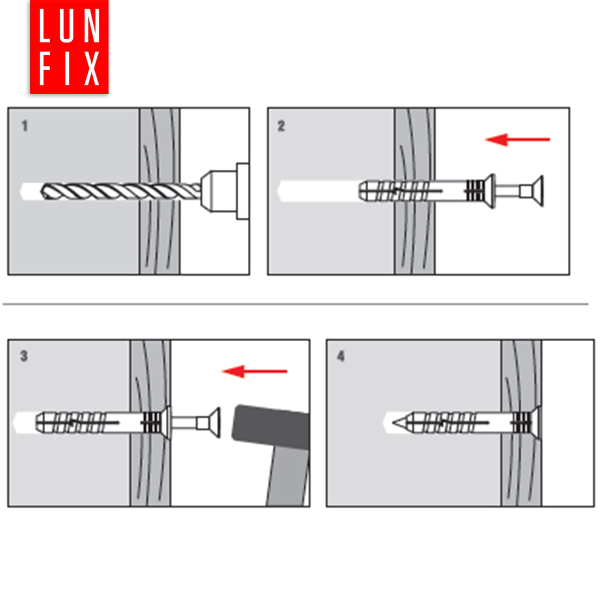 3️⃣ Namontujte šrouby do hmoždinek a vyrovnejte je.