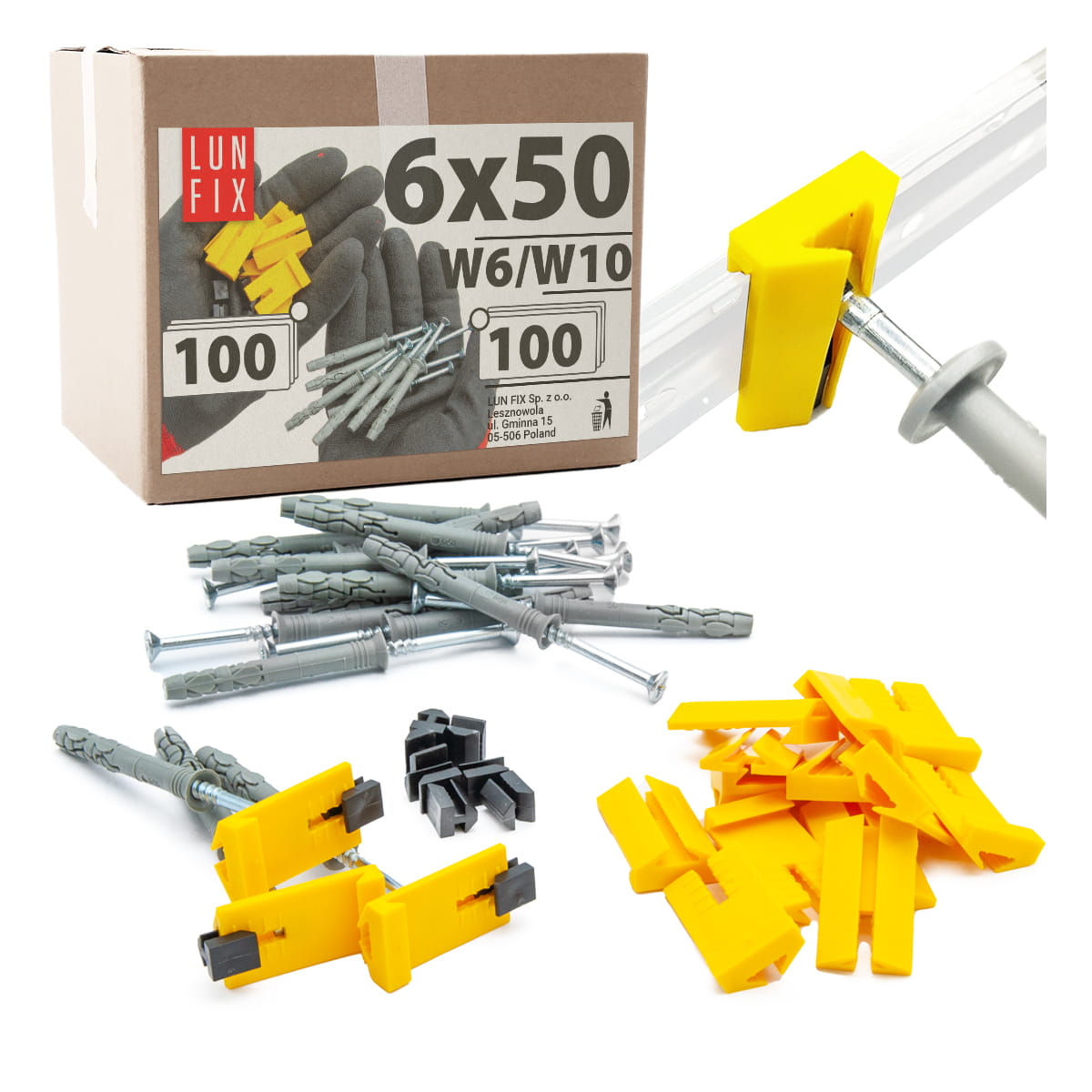 - Sada obsahuje 100 držáků s hmoždinky 6x50mm