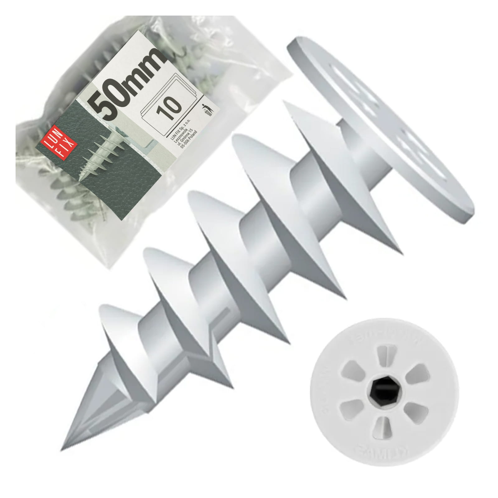 Kvalitní šroubovací "šnečí" hmoždinky jsou určeny pro rychlou montáž do tepelně izolačních materiálů, bez nutnosti vrtání. Díky speciálnímu závitu dosahují spolehlivého a odolného uchycení k vrstvě polystyrenu, eliminují riziko poškození izolační konstrukce.