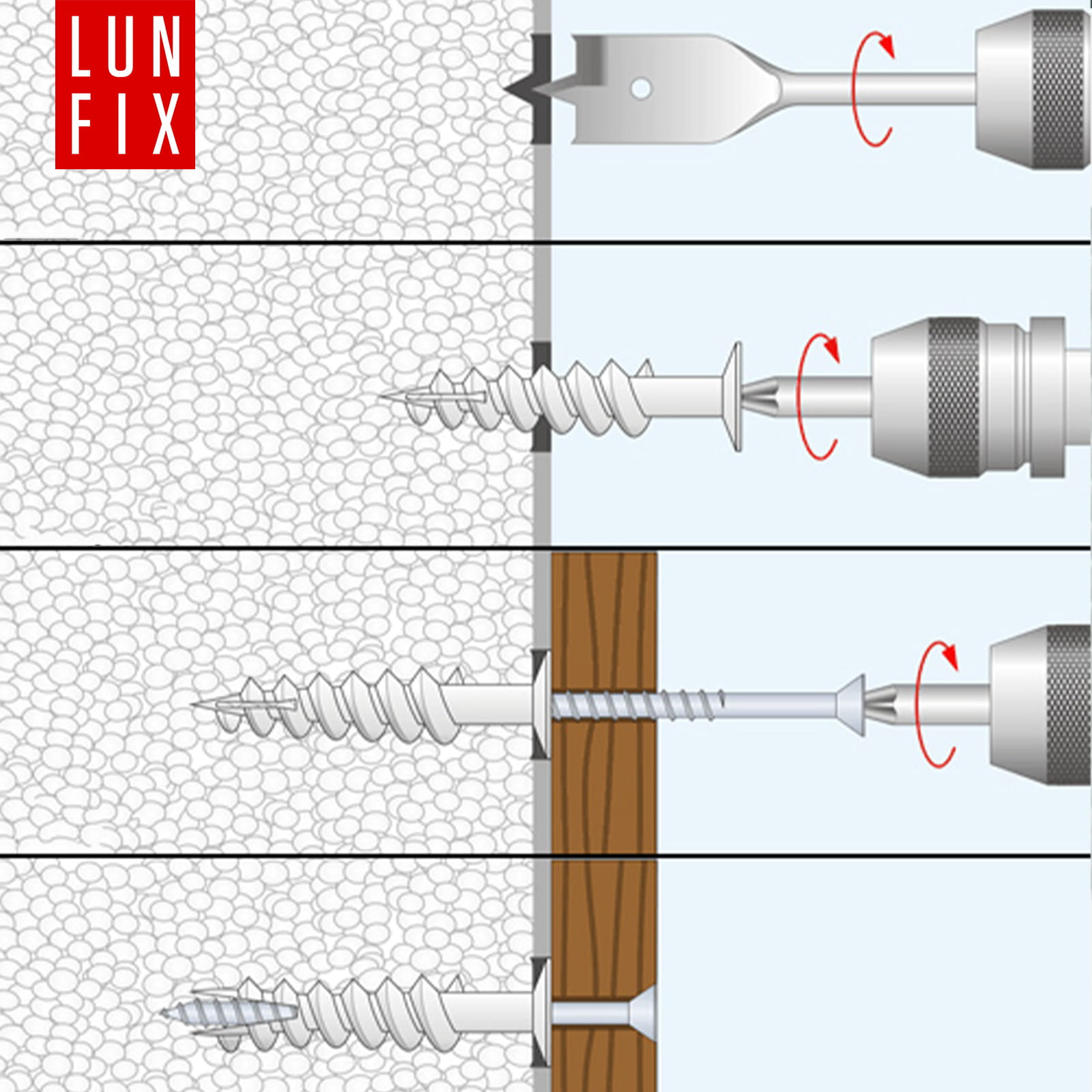- Zašroubujte hmoždinku do polystyrenu ručně.