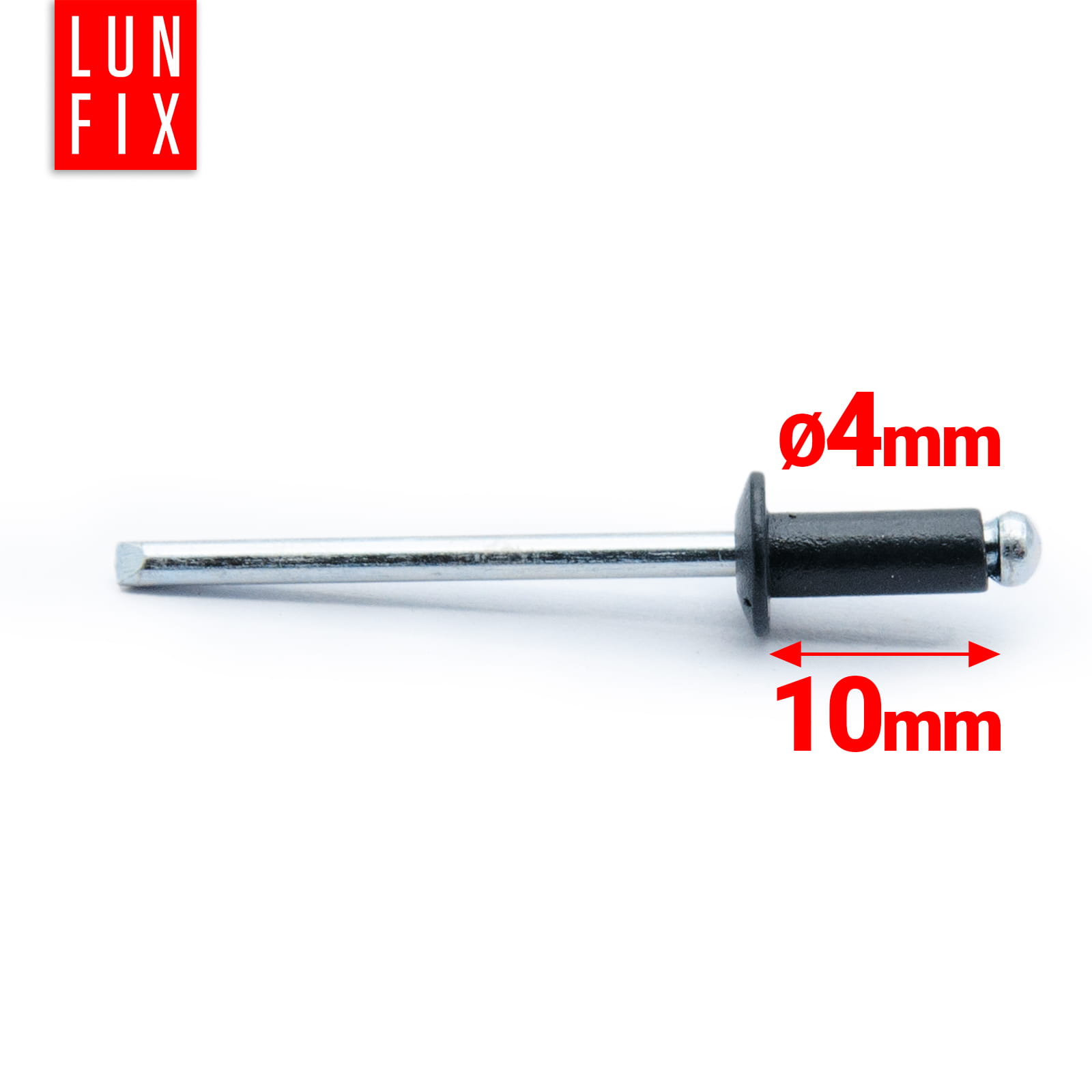 Nýt trhací 4x10mm hliník/ocel se zapuštěnou hlavou 100ks černý RAL9005