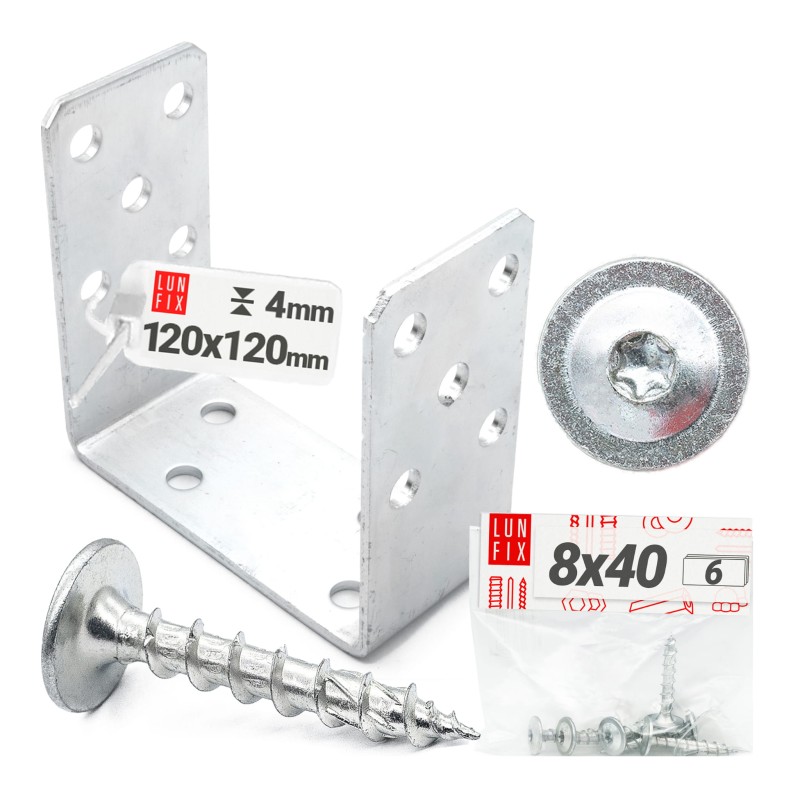 Instalační sada: základna sloupku 12 × 12 cm + šrouby - bezpečné a trvanlivé upevnění dřevěných konstrukcí. Podívejte se na podrobnosti: