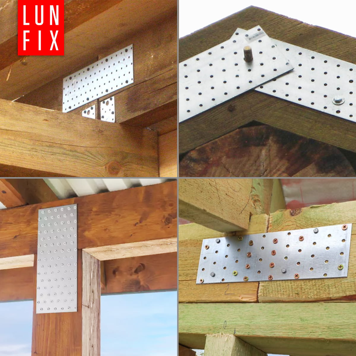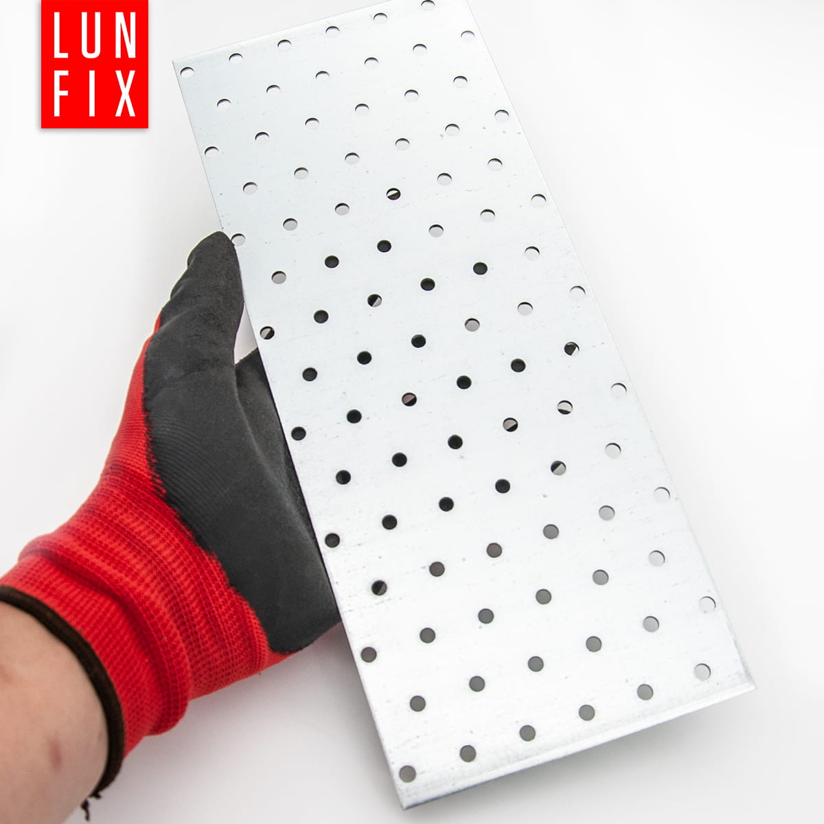 Perforované desky se vyznačují vysokou odolností vůči mechanickému zatížení a jsou k dispozici v různých velikostech a tvarech, což umožňuje jejich široké použití v různých typech dřevěných konstrukcí. Díky perforacím je montáž pomocí hřebíků nebo šroubů rychlá a snadná, což z nich činí velmi praktický prvek ve stavebnictví, tesařství nebo nábytkářství. Desky Lun Fix: