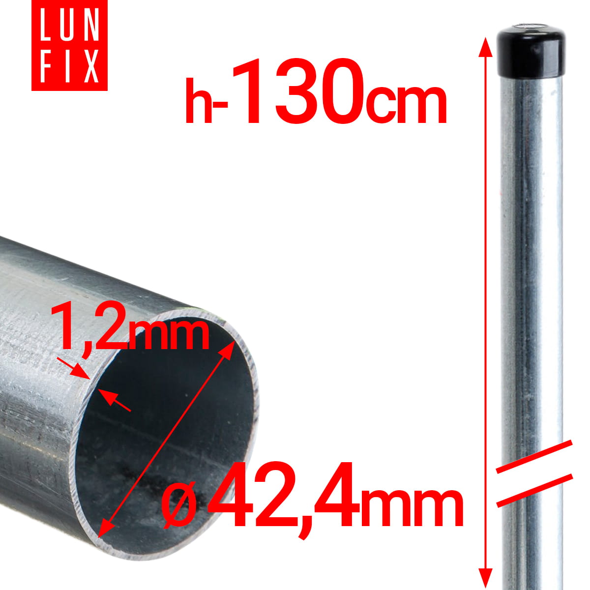 Plotový sloupek kulatý fi 42 tl. 1,2mm, 1.3m pozinkovaný