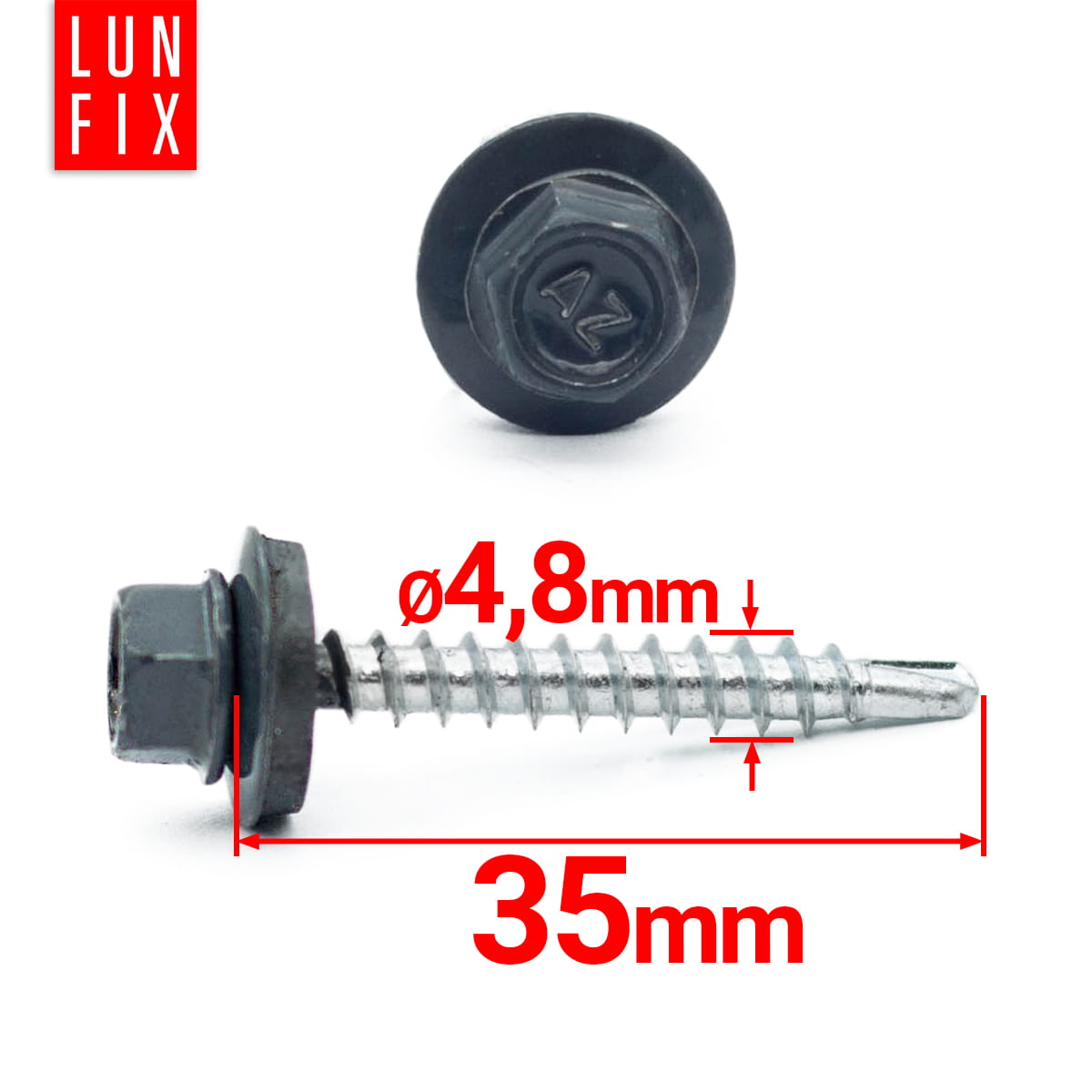 Samořezný vrut do plechu 4,8x35 šedý RAL 7024 250ks.