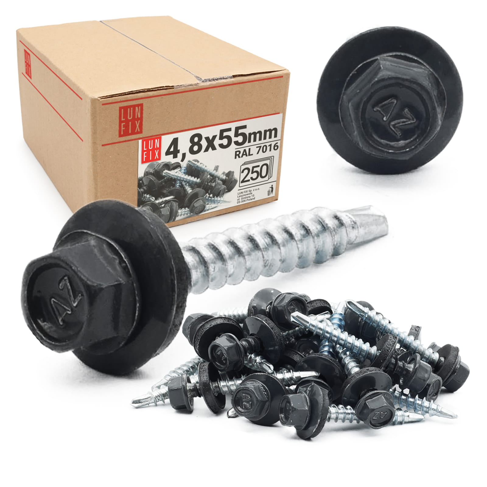 Samořezný vrut do plechu 4,8x55 antracitový RAL 7016 250ks.