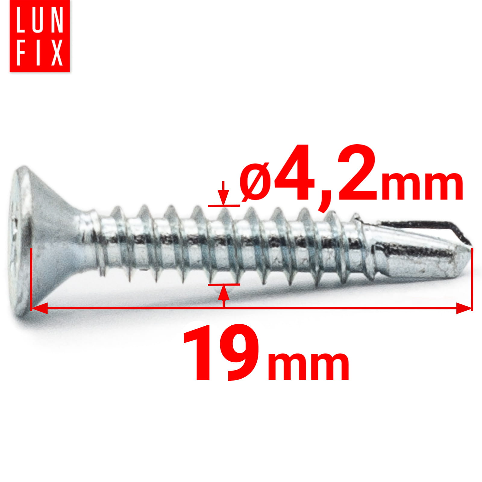 Šroub samovrtný 4,2x19 se zapustnou hlavou DIN 7504 pozinkovaný je spojovací prvek, který má několik klíčových vlastností: