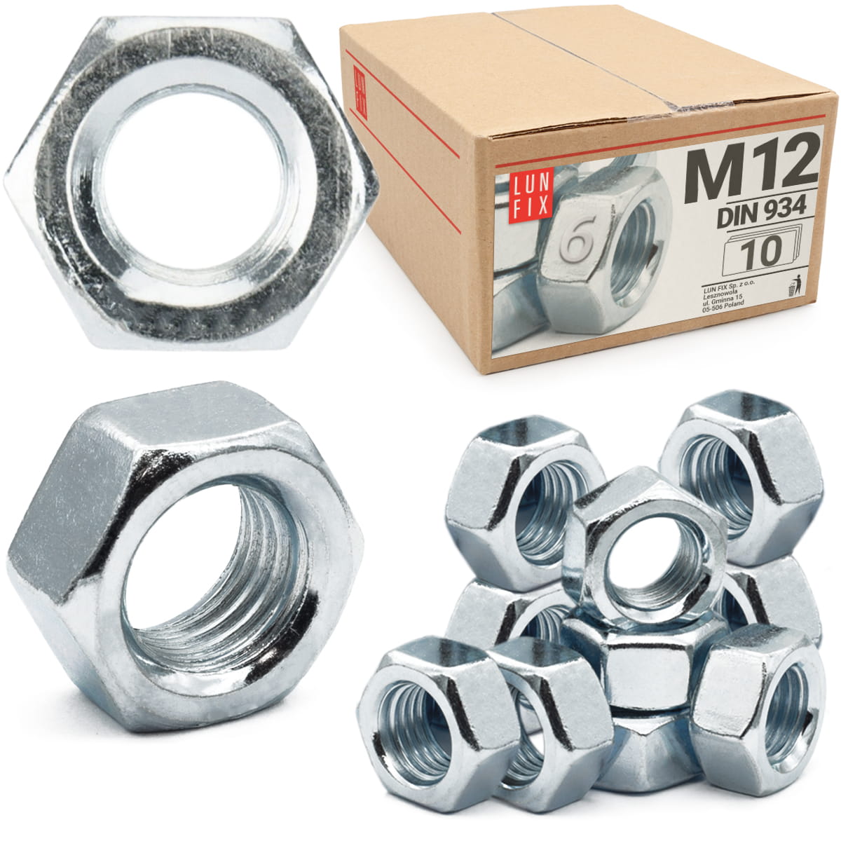 Šestihranná matice M12 DIN 934 třída 6 pozinkovaná 10 ks.
