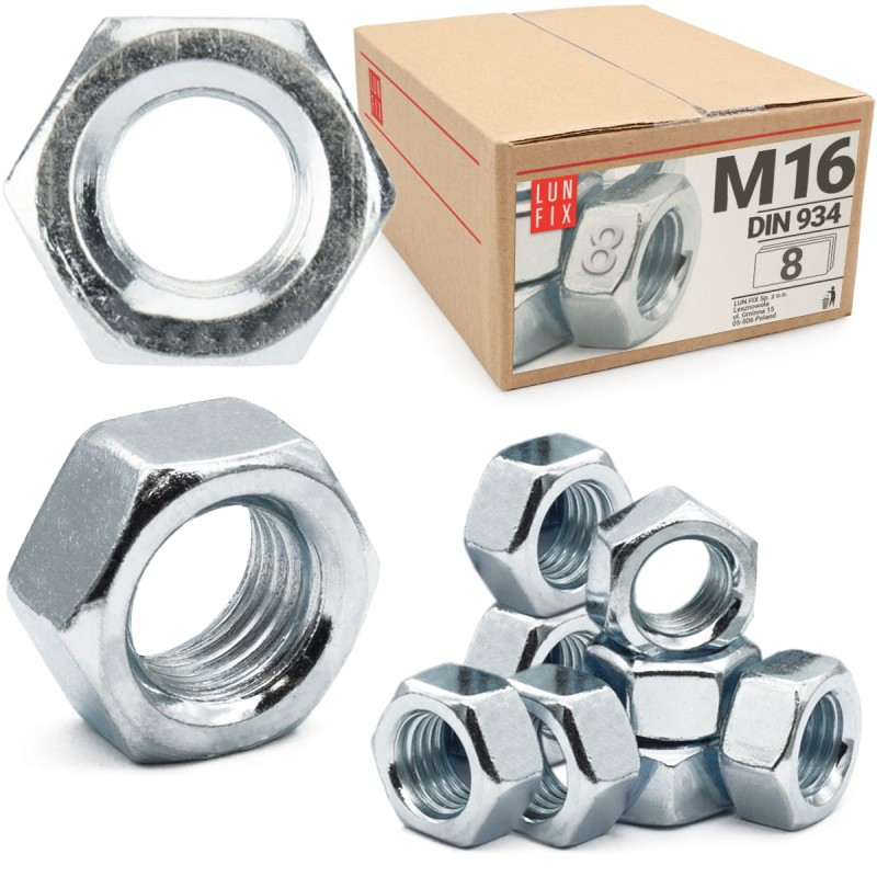 Šestihranná matice M16 DIN 934 třída 8 pozinkovaná 8ks.