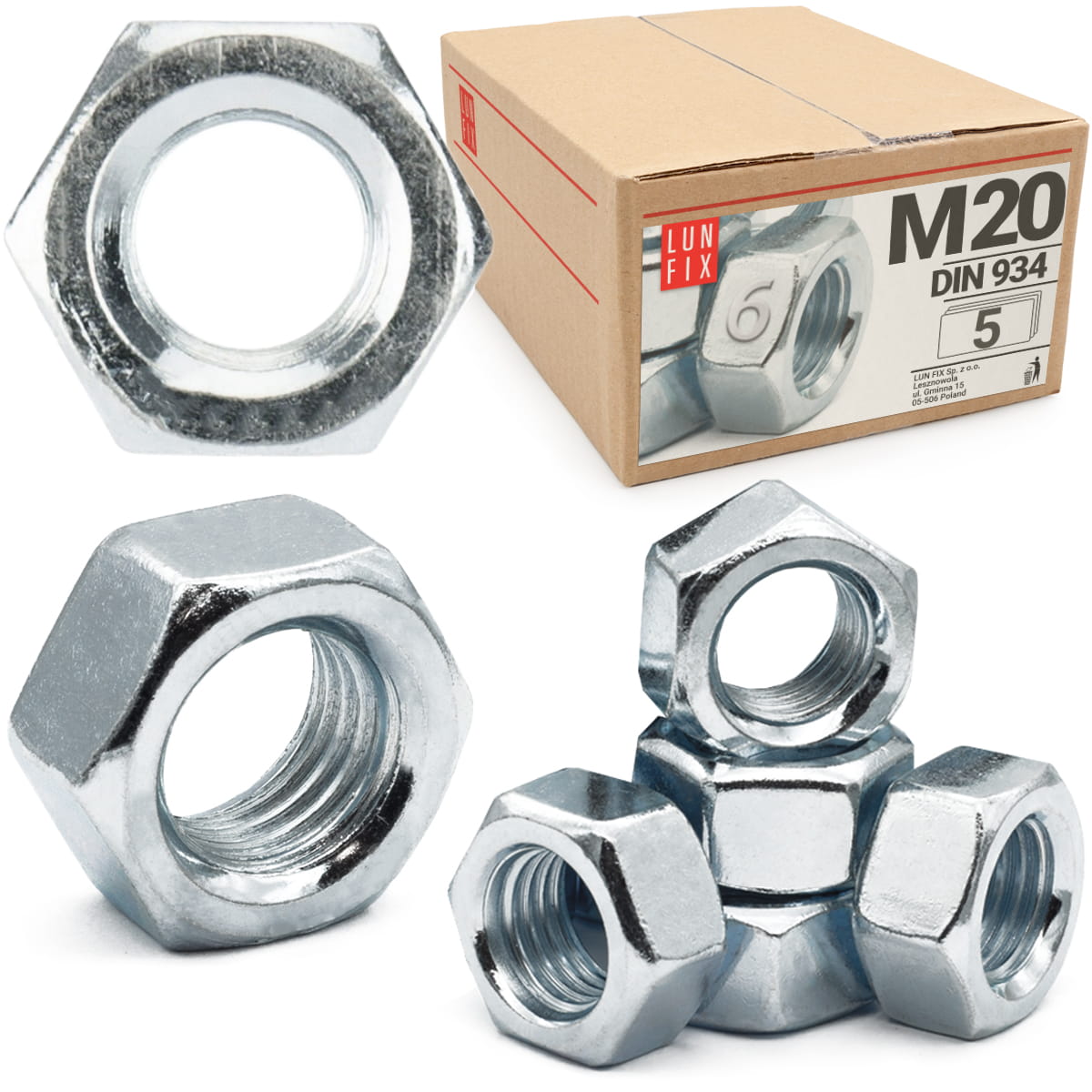 Šestihranná matice M20 DIN 934 třída 6 pozinkovaná 5ks.