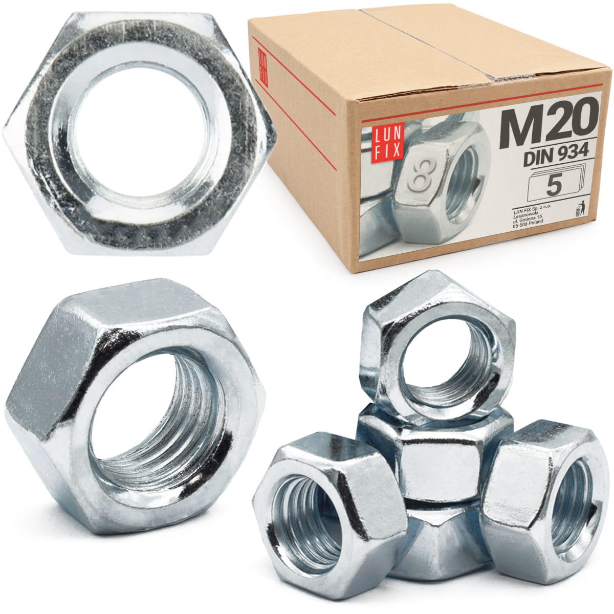 Šestihranná matice M20 DIN 934 třída 8 pozinkovaná 5 ks.
