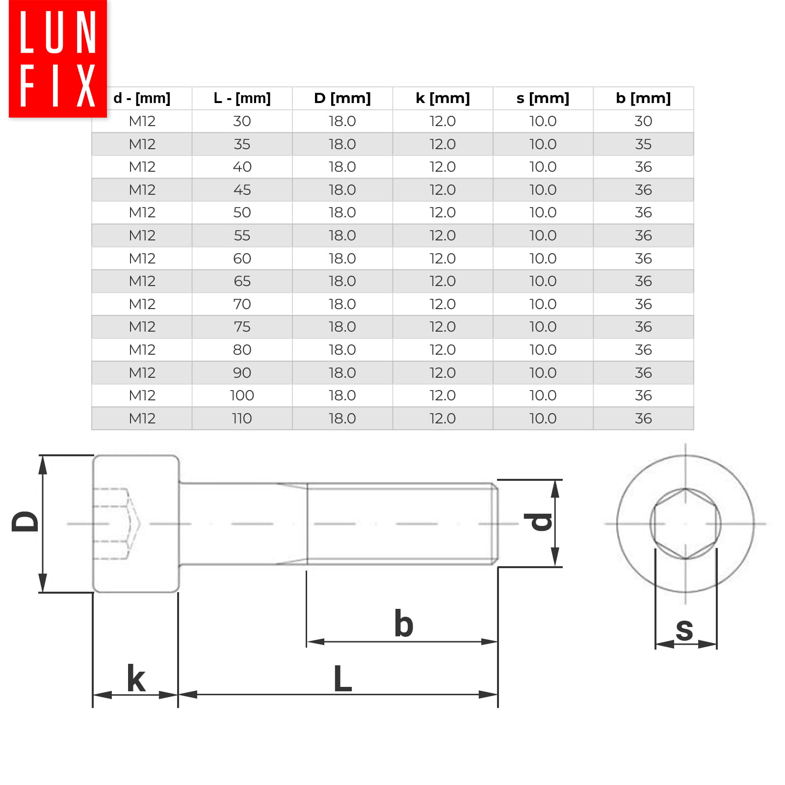 - Průměr: M12