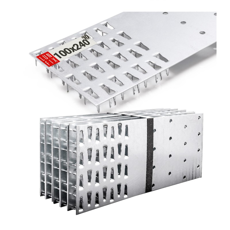 Desky se obvykle zatloukají do dřeva pomocí kladiva nebo speciálních strojů pro montáž tesařských desek, což zajišťuje pevné a stabilní spojení. Je důležité používat vhodné nástroje a techniky, aby se zajistilo správné usazení desek a předešlo se poškození dřeva. Zaostření ostnů usnadňuje montáž.