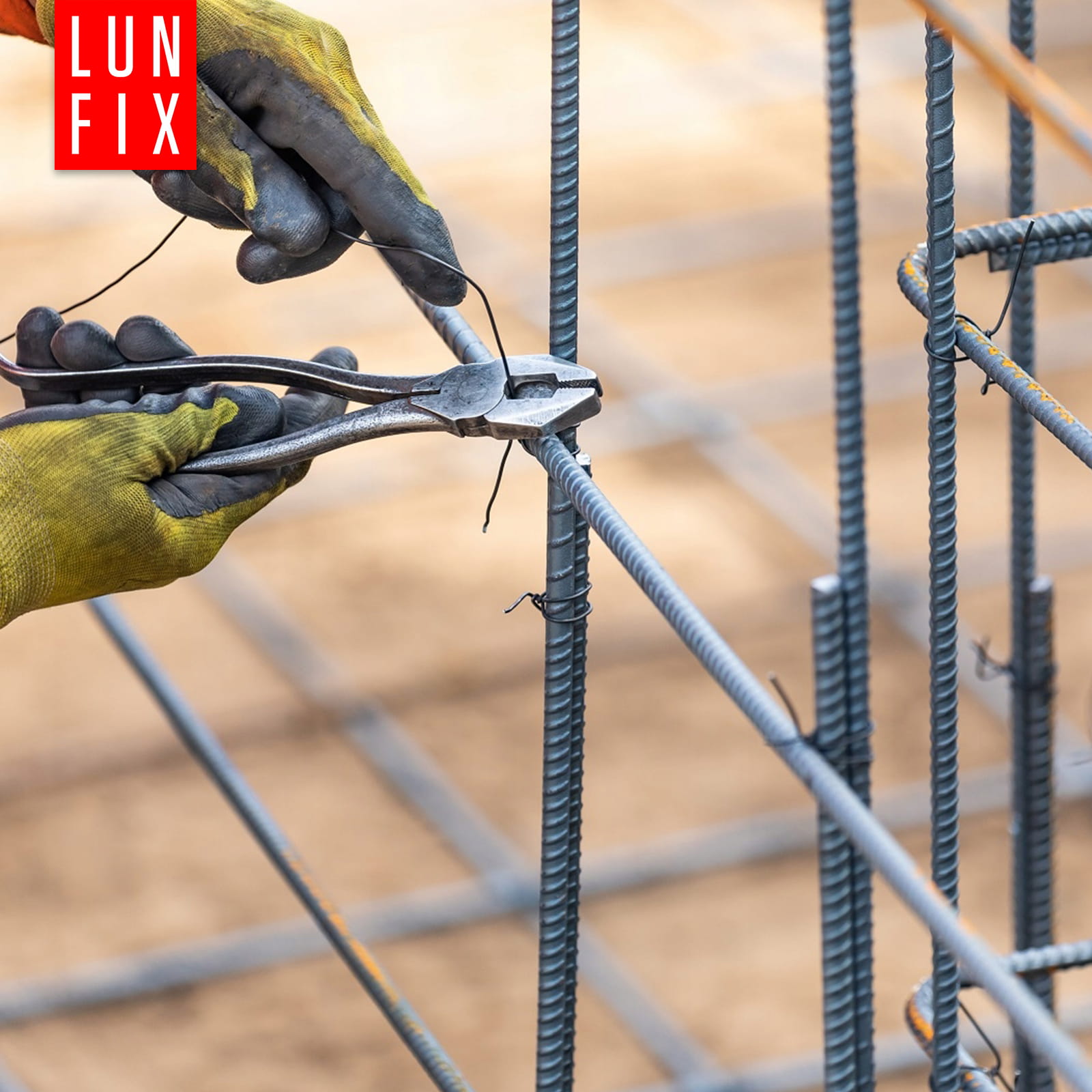 ▶️ Stavebnictví: vázání výztuže a bednění, spojování prken nebo pletiva.