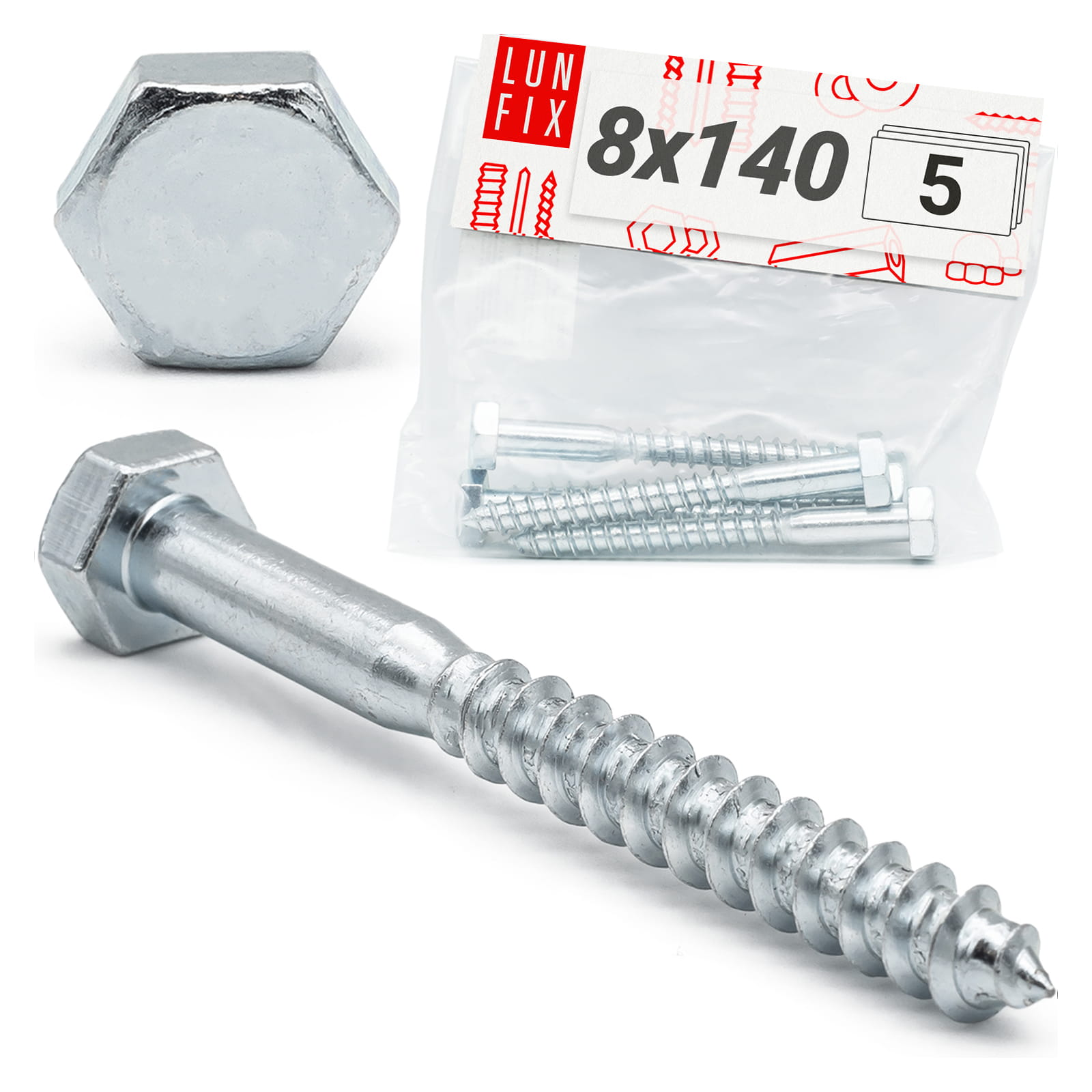 Vrut do dřeva M8x140 s šestihrannou hlavou DIN 571 pozinkovaný 5ks.