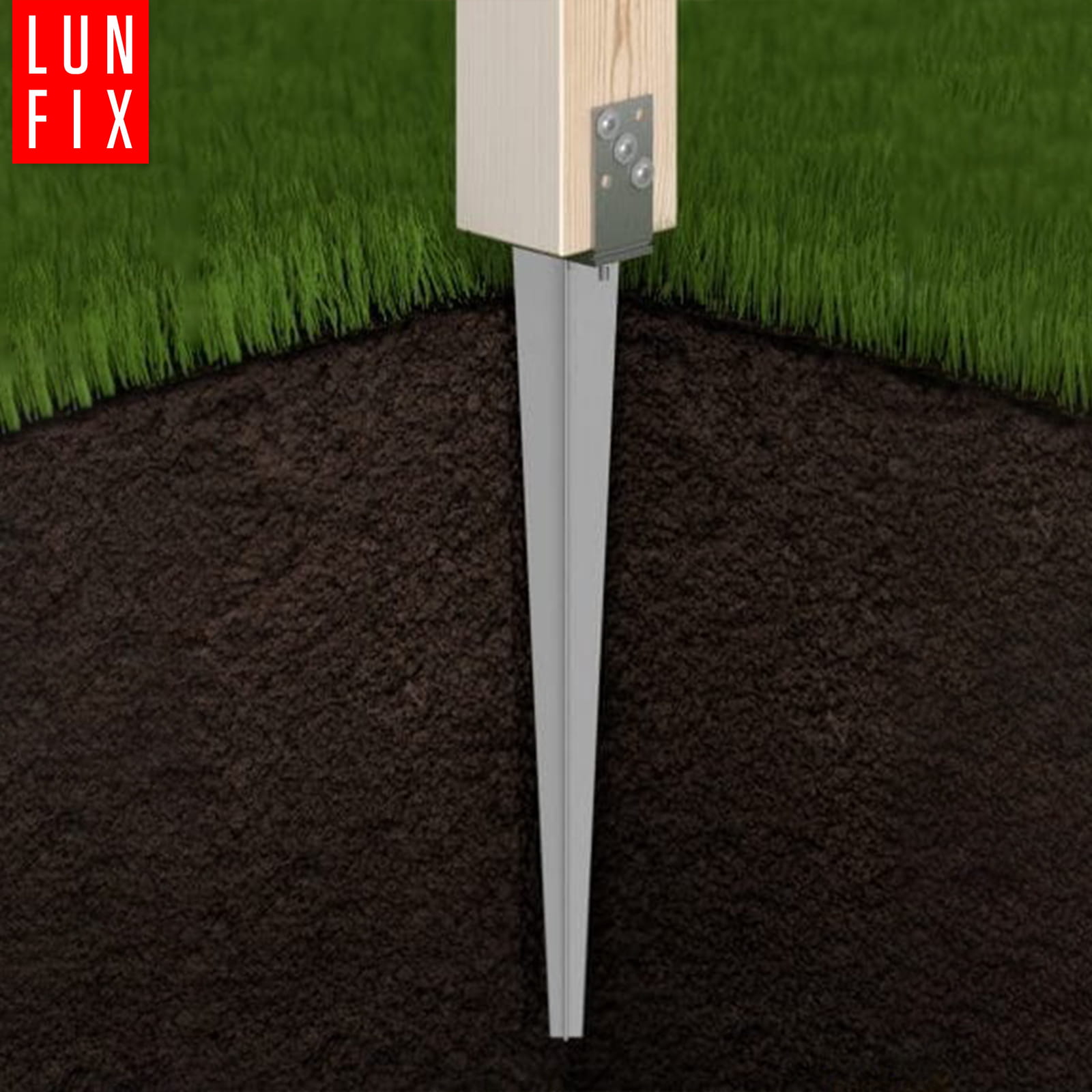 ✔️ Snadná montáž - Kotva se zatlouká přímo do půdy, což eliminuje potřebu použití složitých nástrojů a zhotovení základů.