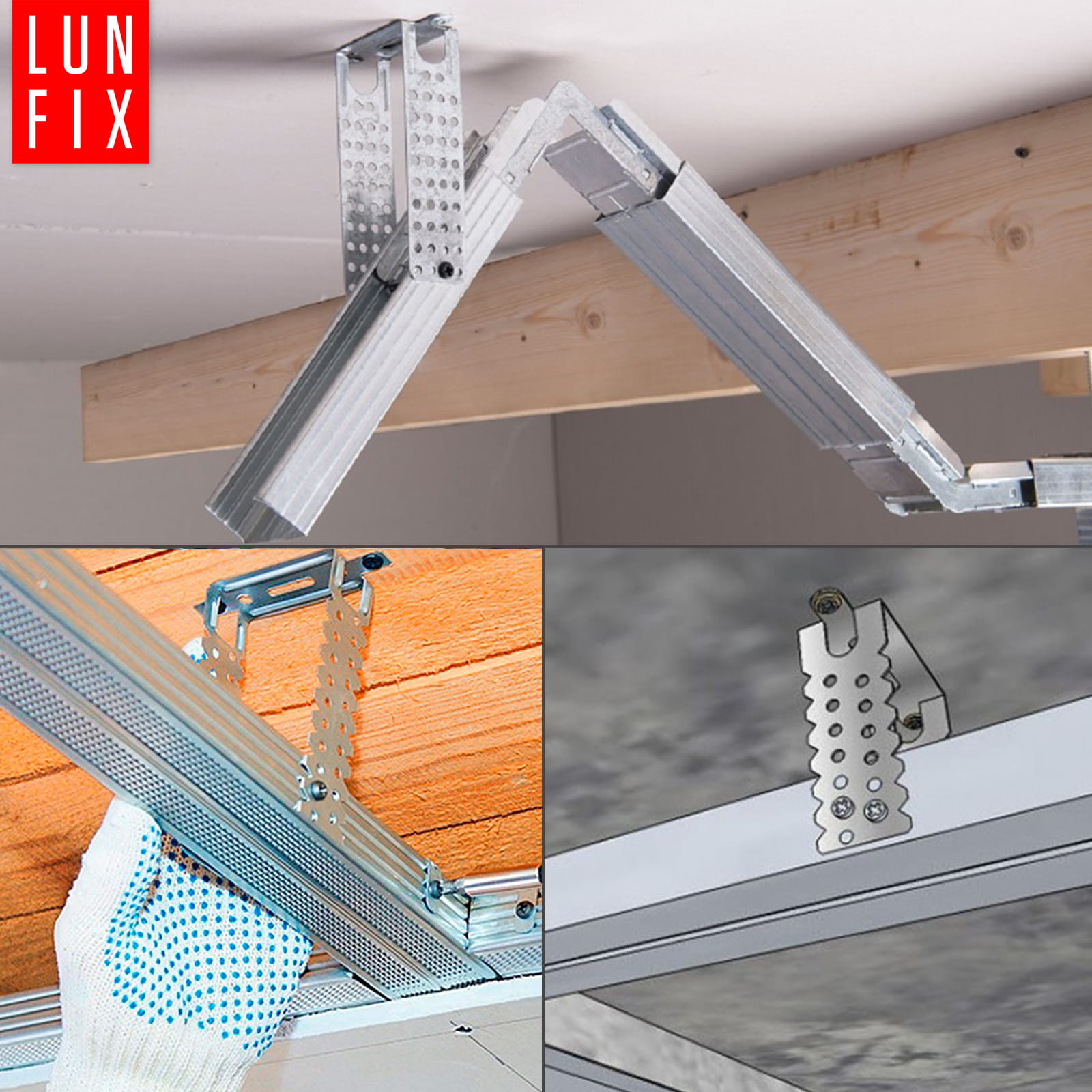 Po připevnění všech držáků k nim připojte stropní profily. Hlavní profil by měl být zasunut do otvorů držáku a poté zajištěn šrouby nebo speciálními spojkami.